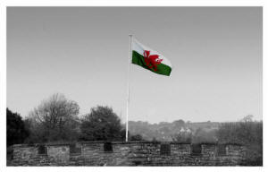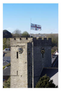 Welsh flag flying on All Saints Church / Mumbles - 1.29pm
