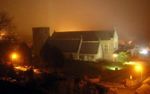 All Saints church still in the mist - 8pm