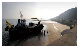 The UK Dredger/Survey ship - "Seahorse" alongside Knab Rock, Mumbles this