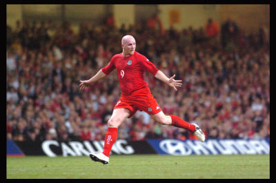 John Hartson in action for Wales against Azerbaijan in October 2005