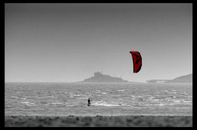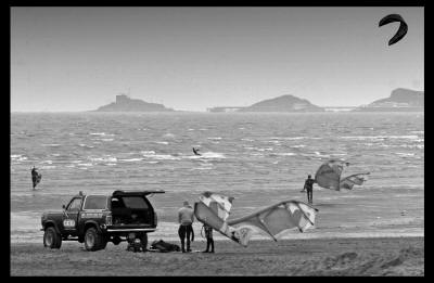 Kitesurfing at the bottom of Sketty Lane with the Mumbles head in the
