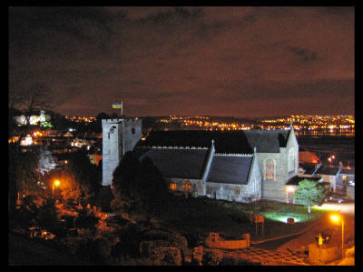 All Saints Church with castle in distance, Mumbles - 6.20pm