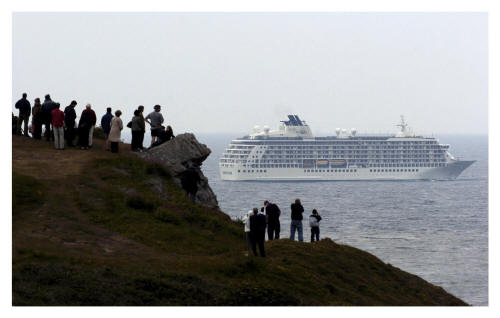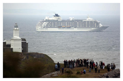 Crowds gather at Mumbles Head tonight to watch "The World" cruise ship depart